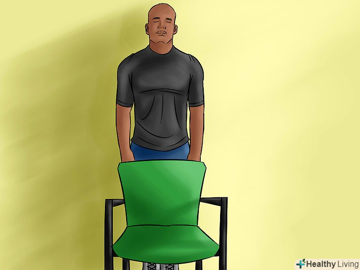 Поза Ромберга. [8] дана вправа допоможе впоратися із запамороченням шляхом збереження рівноваги.- Станьте спиною до стіни і поставте перед собою стілець. Якщо вам буде здаватися, що ви зараз впадете, то стіна або стілець будуть вашою опорою.