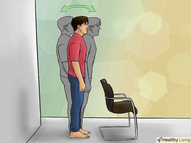 Вправа на розгойдування.[9] дана вправа допоможе вам навмисно випробувати почуття обертання, щоб ви змогли впоратися з собою в майбутньому.- Станьте спиною до стіни і поставте перед собою стілець. Якщо вам буде здаватися, що ви зараз впадете, то стіна або стілець будуть вашою опорою.
