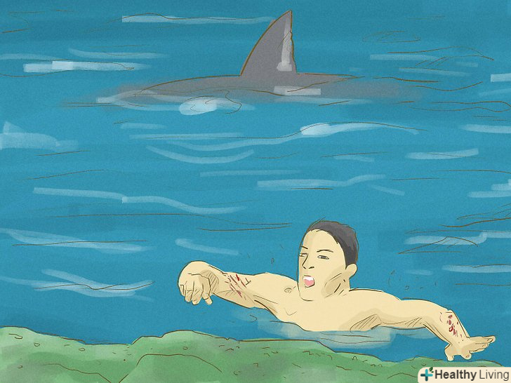 - Якщо хтось із вас отримав відкриту рану під час аварії корабля, зробіть все можливе, щоб зупинити кровотечу. Кров приваблює риб і акул, і вони відчувають її на великій відстані.[9]