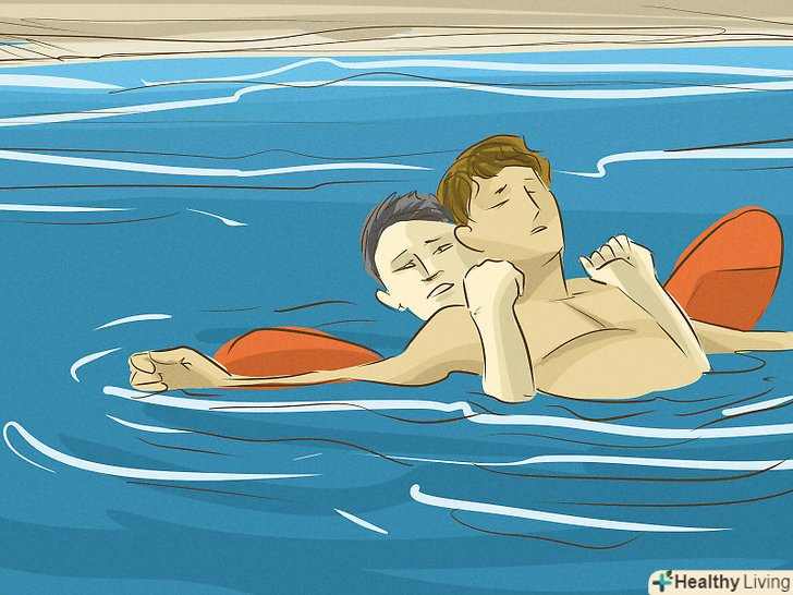 Допомагайте іншим.після того як ви знайдете спосіб триматися на воді і переконайтеся, що у вас немає серйозних пошкоджень, Озирніться навколо — можливо, комусь із тих, що вижили після корабельної аварії потрібна допомога. Інші пережили корабельну аварію люди можуть відчувати серйозні проблеми і потребувати термінової допомоги.[6]- Допоможіть тим, у когошок. Поговоріть з людьми, запевніть їх, що все буде добре, і дайте їм знати, що ви готові прийти на допомогу.