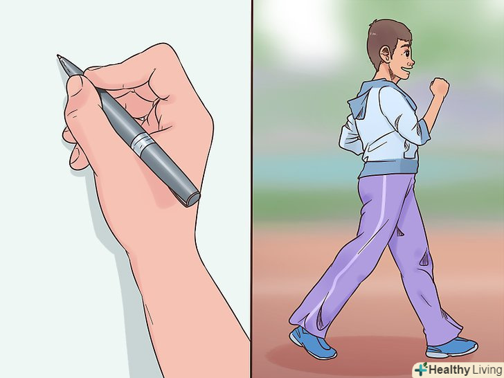 Зробіть кілька простих вправ для кисті робочої руки.наприклад, візьміть ручку або олівець і покрутіть між пальцями. Можна також стискати пальці в кулак і розтискати їх, розводити Пальці в сторони і знову зводити їх разом.- Регулярно розминайте робочу руку, щоб запобігти судоми.
