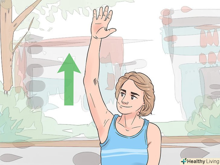 Підніміть якомога вище зап'ястя і вільно звісьте пальці.уявіть, ніби ви вішаєте стрічку на білизняну мотузку у себе над головою. Потім підніміть пальці, послабте зап'ястя і повільно опустіть його якомога нижче, як ніби ви простягаєте стрічку вниз. Після цього знову повільно підніміть долоню, як ніби до Вашого зап'ястя прив'язали повітряну кульку.- Повторіть вправу з самого початку для другої руки. Виконайте вправу 5-10 разів.