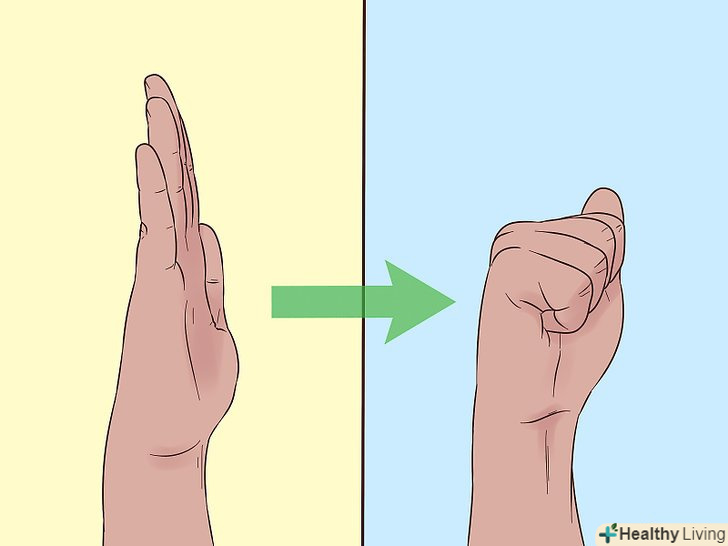 Регулярно робіть розтяжку сухожиль долоні і пальців.щоб виконати дану вправу, спочатку випряміть пальці, потім стисніть їх в кулак і знову випрямити.- Повторюйте вправу, але кожен раз, коли ви стискаєте Пальці в кулак, робіть це трьома різними способами: кладіть великий палець на вказівний, на кілька пальців або під пальці, а також іноді згинайте руку в зап'ясті.[9]
