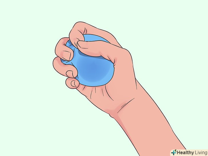 Стискайте м'ячик для зняття стресу, щоб розім'яти зап'ясті і пальці.М'ячик для зняття стресу дозволяє легко виконати розтяжку пальців і зап'ястя, а також зміцнити їх. Він розвиває витривалість кисті і зменшує ймовірність того, що вона почне хворіти через тривале письма.- М'ячик для зняття стресу можна придбати у великих супермаркетах або замовити через Інтернет.