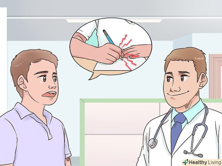 У разі частих болів зверніться до лікаря.якщо ви часто відчуваєте біль і не можете позбутися від неї за допомогою перерахованих вище способів, проконсультуйтеся з лікарем. Якщо вам доводиться багато писати в школі або на роботі, дізнайтеся у лікаря про заходи, які допоможуть впоратися з цим. Лікар зможе порекомендувати вам деякі методи і порадить, як реалізувати їх на практиці, щоб ви змогли краще справлятися зі своєю роботою.- Можливі рішення проблеми включають в себе зміну робочого місця, так щоб воно краще підходило вашим розмірам і звичкам (наприклад, можна відрегулювати висоту стільця і столу або нахилити стільницю), вибір відповідних інструментів для письма або перехід на інші методи роботи (наприклад, диктування або набір на комп'ютері замість написання тексту вручну).