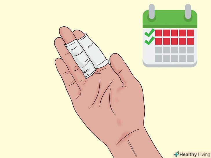 Якщо у вас загострився артрит, накладіть на палець шину.потримайте шину 2-3 тижні, щоб зменшити викликане артритом запалення. Виміряйте довжину пальця, придбайте шину відповідних розмірів і прив'яжіть її до пальця медичною стрічкою. Шина повинна надійно фіксувати хворий палець і утримувати його в прямому положенні.[12]- Можна також зробити шину самому з двох прямих вузьких предметів (наприклад, смужок картону) і прив'язати їх до кінчика і основи пальця.