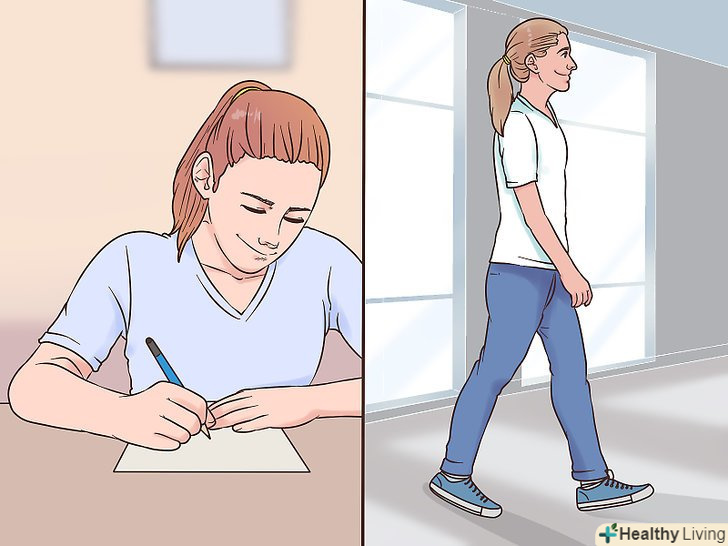 Робіть перерви, щоб менше втомлюватися.з урахуванням перерв відведіть для письма трохи більше часу. Якщо тільки ви не здаєте важливий іспит і у вас є така можливість, раз на годину (або частіше) вставайте і походжайте протягом 1-2 хвилин. Дайте своїм рукам і зап'ястям розслабитися.- Якщо у вас є час, виходьте на свіже повітря.