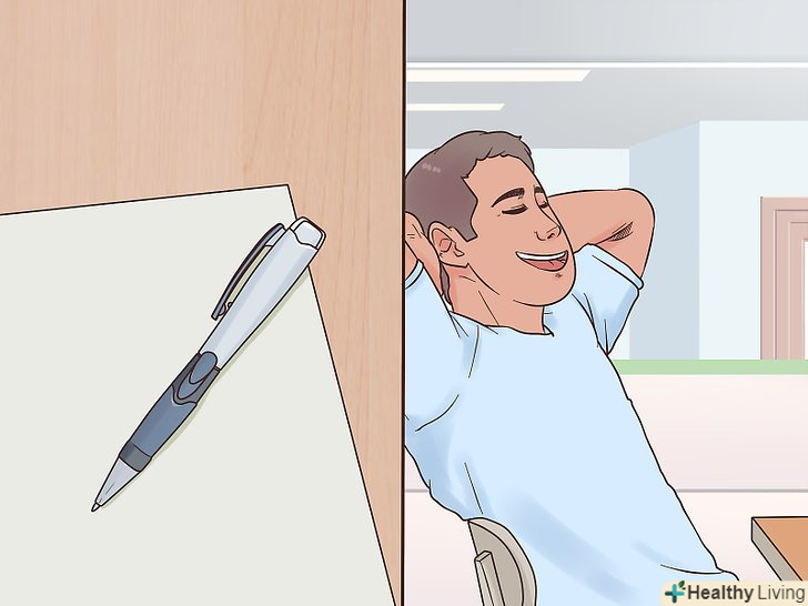 Відкладайте ручку кожного разу, коли ви не пишете.наприклад, якщо ви зупинилися на кілька хвилин, щоб сформулювати чергову думку, покладіть ручку на стіл, розслабте руку, відкиньтеся в кріслі або навіть встаньте і трохи походіть.- Час від часу розминайте руку і пальці.