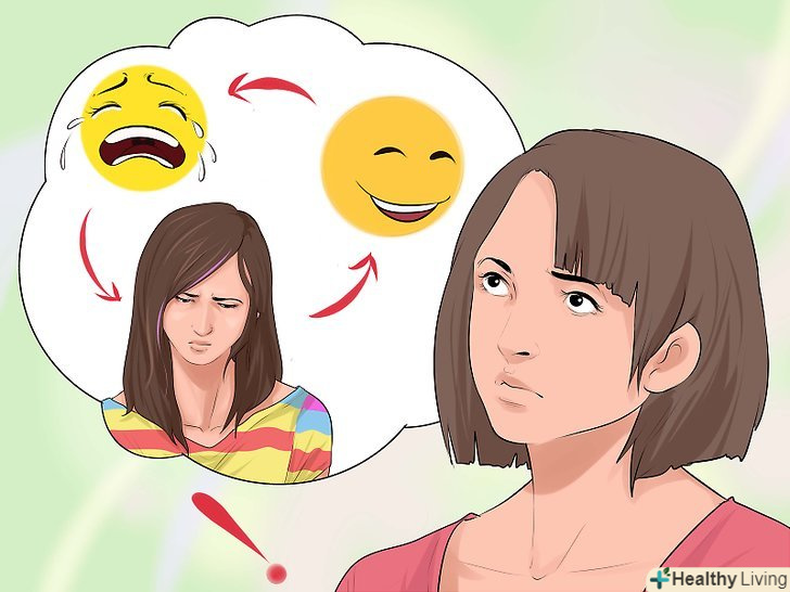 Зверніть увагу на різкі перепади настрою.така поведінка може бути ознакою того, що вам може бути показана робота з психотерапевтом, або симптомом психічного розладу. Перепади настрою можливі в перехідному віці, під час вагітності і менопаузи, а також в стресовому стані, проте різкі зміни в настрої можуть вказувати на більш серйозні проблеми.- Перепади настрою-це явно виражені і раптові зміни настрою або емоційного стану. Наприклад, вас може різко кидати з ейфорії в смуток без зрозумілих причин. Така поведінка може бути симптомом біполярного розладу або розладу особистості. Якщо помітите, що у вас або у вашого близької людини бувають безпричинні перепади настрою, які посилюються з часом, вам слід звернутися за допомогою.[7]