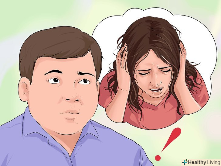 Навчіться дізнаватися ознаки депресії.всі люди час від часу засмучуються, проте постійне відчуття безвиході, відчаю, втрата інтересу до всього і тривожність, які зберігаються більше двох тижнів, можуть вказувати на клінічну депресію.[1]- Якщо симптоми настільки яскраво виражені, що вони заважають людині займатися звичними справами або істотно знижують якість життя, Робота з психотерапевтом допоможе вирішити проблему.
