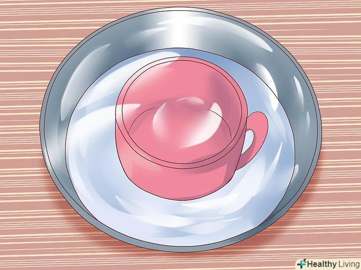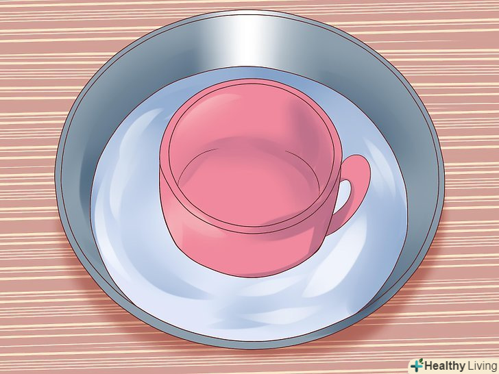 Поставте важкий стакан на плоске дно миски.це повинен бути стакан, який не буде плавати у воді.