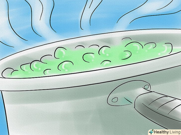 Налийте воду, яку ви хочете очистити, в каструлю.поставте її на плиту і включіть плиту на максимальну потужність. При кип'ятінні будь-які бактерії, які могли жити у воді, будуть вбиті, знижуючи, таким чином, можливість захворіти, коли ви вип'єте цю воду. [1]- Якщо ви в дикій місцевості і вам треба очистити воду, розкладіть багаття, щоб закип'ятити каструлю з водою. Якщо каструлі у вас немає, візьміть будь-яку вогнетривку ємність.