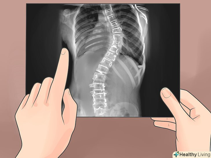 Проконсультуйтеся у ортопеда.якщо за результатами огляду виявиться, що у вас є викривлення в хребті (сколіоз), вам потрібно буде записатися на прийом до фахівця. При легких формах сколіозу симптомів зазвичай немає, але чим сильніше хребет викривлений, тим вище ймовірність появи болю і порушення функцій хребта.[11] Терапевт огляне ваш хребет і, швидше за все, призначить вам зробити знімок спини, щоб краще зрозуміти ступінь викривлення. Можливо, лікар також буде шукати поширені причини сколіозу у дорослих, включаючи остеоартрит, остеопоротичні переломи, остеомаляцію (розм'якшення кісток) і міжхребцеву грижу.[12]- Вам також можуть призначити комп'ютерну томографію або магнітно-резонансну томографію для уточнення діагнозу.
