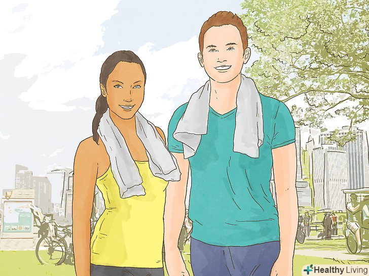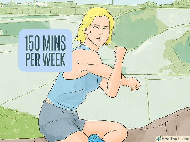 Намагайтеся приділяти 150 хвилин на тиждень помірним тренуванням.на додаток до більш рухомого способу життя, для зміцнення серцевого м'яза вам також варто щотижня приділяти 2,5 години помірним фізичним навантаженням. Або ж, в залежності від вашого рівня фізичної підготовки і рекомендацій лікаря, 75 хвилин інтенсивної фізичної активності — вони дадуть той же результат.[3]- Помірні вправи характеризуються почастішанням дихання і серцебиття, але не до такої міри, що ви не в змозі говорити. У більшості випадків помірним фізичним навантаженням може стати швидка прогулянка, танці, робота в саду або городі, гра з дітьми або прогулянка з коляскою.[4]