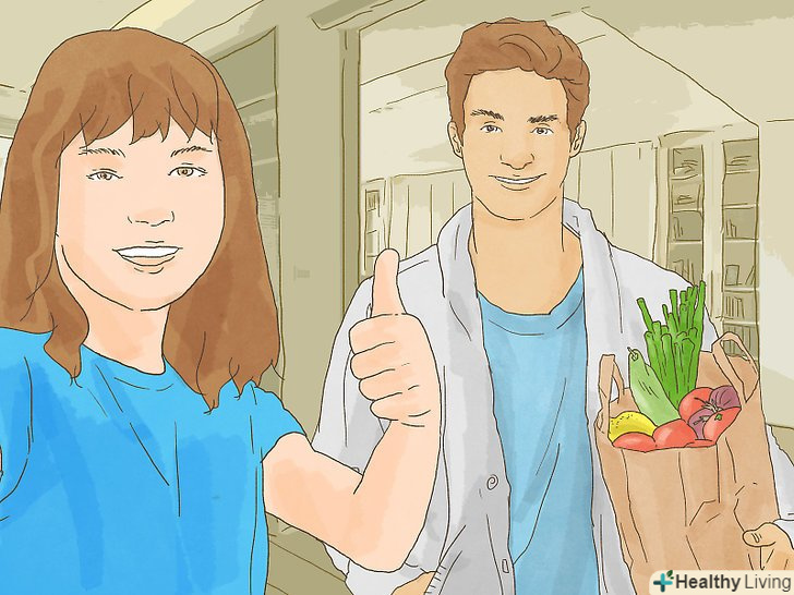 Купуйте на фермерських ринках.майже у всіх містах і населених пунктах є фермерські ринки. Можна надати значну підтримку суспільству, якщо ви, ваші друзі і батьки будете купувати продукти саме там. Розкажіть всім, як важливо купувати продукти місцевого виробництва (щоб виділялося менше парникових газів, викликаних їх транспортуванням до Вашого столу). На цих ринках ви знайдете свіжі та смачні продукти харчування.- Коли йдете на ринок або в магазин, не забувайте взяти з собою сумки або пакети багаторазового використання.