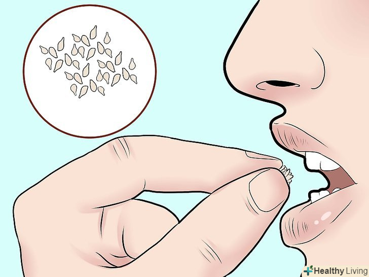Жуйте кунжутне насіння.Жуйте, але не ковтайте, повну ложку кунжутного насіння. Потім візьміть суху зубну щітку і почистіть зуби, використовуючи кунжут як зубну пасту. Так ви видалите наліт і одночасно відполіруєте зуби.