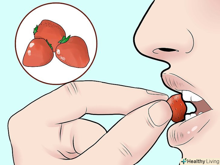 Застосовуйте помідори і полуницю.томати і полуниця, як і апельсини, багаті вітаміном C. розріжте їх і втирайте їх сік в поверхню зубів, залишивши хвилин на 5. Сполосніть рот розчином харчової соди у воді.