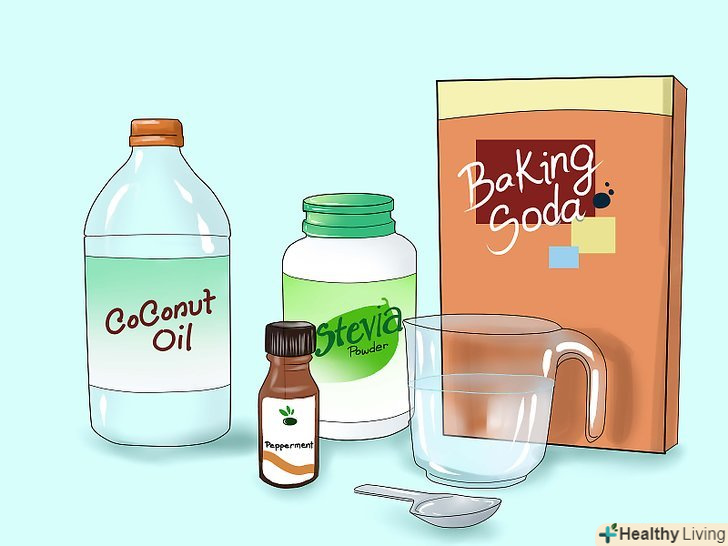 Робіть саморобну зубну пасту.якщо ви хочете триматися подалі від хімікатів, що містяться в більшості магазинних зубних паст, можна зробити свою власну натуральну зубну пасту від зубного нальоту, використовуючи всього кілька інгредієнтів. Змішайте ½ чашки кокосового масла з 2-3-ма столовими ложками харчової соди, 2-ма маленькими пакетиками посконника крапіволістного і 20-ю краплями обраного вами ефірного масла, наприклад, м'яти або кориці. Зберігайте саморобну зубну пасту в невеликій скляній баночці і використовуйте як звичайну зубну пасту.