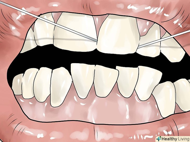 Використовуйте зубну нитку.це важлива складова гігієни порожнини рота, якої, на жаль, часто нехтують. Нитка видаляє бактерії і залишки їжі між зубами, допомагаючи запобігти утворенню нальоту. Користуватися їй необхідно один раз в день: перед вечірньою чищенням зубів. Протискуйте нитку між зубами акуратними пиляють рухами, уникайте вщелківанія її між ними, так як так ви можете пошкодити ніжні тканини ясен.- Переконайтеся, що в кожному новому проміжку між зубами ви використовуєте чисту частину нитки, в іншому випадку ви просто будете переносити бактерії від однієї частини порожнини рота в інший.
