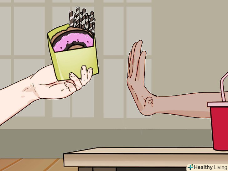 - Якщо ви хочете, щоб у вас вдома були швидкі закуски на випадок гостей, можна тримати їх вдома, але при цьому слід обмежити свій доступ до них. Покладіть їжу на верхню полицю, щоб її було складніше дістати. Заморозьте цукерки та печиво, щоб їм довелося відтавати. Коли відчуєте сильну тягу в будь-якого продукту, у вас буде час подумати, чи варто вам його їсти.