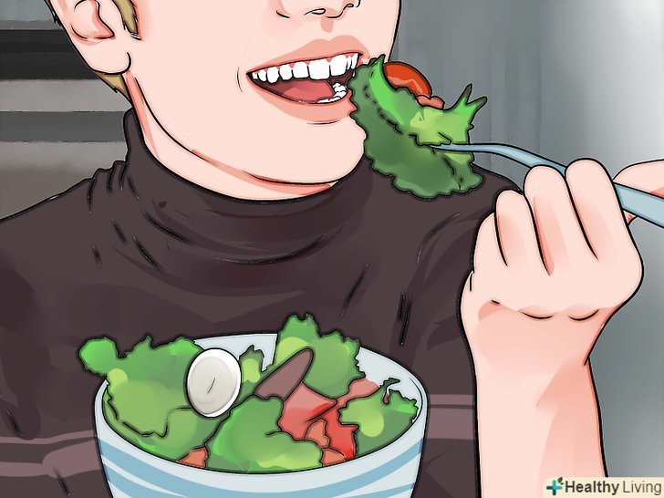 - На сніданок їжте нежирний білок, цільнозернові злаки і фрукти. Найкраще з'їдати на сніданок близько 350 калорій. Якщо ви багато займаєтеся спортом або у вас фізично важка робота, збільште цю кількість.[13]