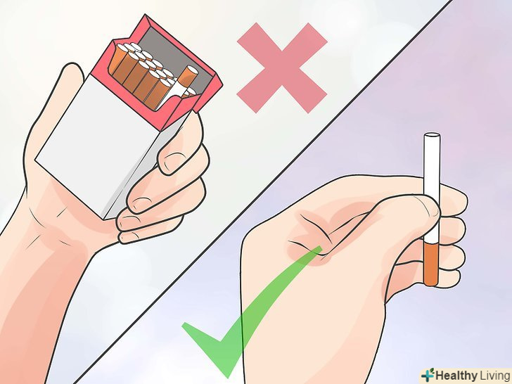 Вмійте обмежити себе.нічого страшного, якщо зрідка ви покурите в свій "день без сигарет". Але важливо розуміти, що це як обманювати себе під час дієти. Не можна щодня давати собі послаблення, якщо ви не хочете стати завзятим курцем. Найголовніше-вміти зупинитися після першої сигарети, якщо без неї ніяк не обійтися.[28]- Щоб фізично обмежити себе, спробуйте не носити з собою більше однієї-двох сигарет. Можна зберігати їх у твердій порожній пачці з-під сигарет або купити спеціальний портсигар.