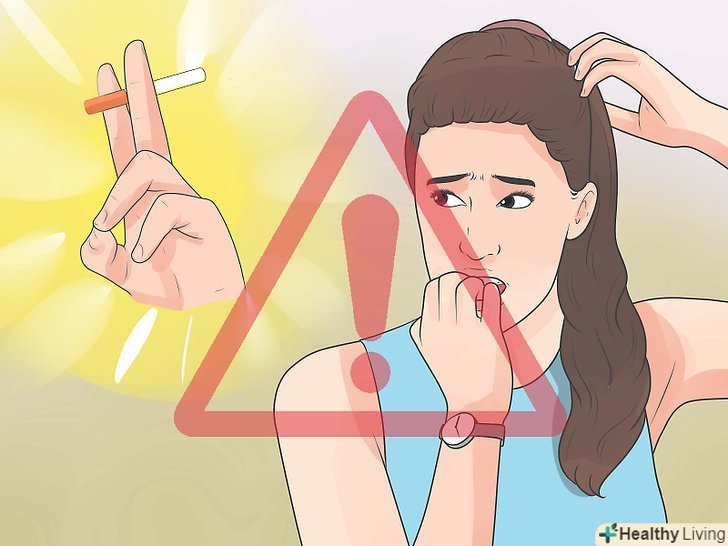 Вивчіть наслідки куріння тютюну.у тютюні міститься безліч хімічних речовин, а найбільше звикання викликає нікотин. Сила нікотинової залежності порівнянна з такими наркотиками, як героїн або кокаїн.[29] при низькому рівні споживання нікотину виникає легке відчуття ейфорії, яке пов'язане з викидом дофаміну і помірного припливу адреналіну в процесі куріння. Нікотин викликає підвищення частоти серцевих скорочень в стані спокою, знижує температуру шкіри і погіршує циркуляцію крові в кінцівках.[30]- Серед наслідків куріння-розвиток раку, інсульти, ішемічна хвороба серця, виникнення згустків крові та хронічна обструктивна хвороба легень (ХОЗЛ). Куріння шкодить буквально кожному органу нашого тіла.[31]