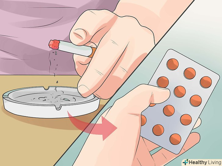 - Існують також сильніші Рецептурні препарати ЗТН. До них відносяться такі ліки, як бупропіон (зібан) і варениклін (чантікс).[22] на відміну від безрецептурних продуктів, такі Рецептурні препарати краще використовувати відокремлено, ніж в поєднанні з іншими продуктами, якщо ваш лікар не рекомендував вам певних комплексних методів. Проконсультуйтеся щодо рецептурних препаратів ЗТН у свого терапевта.