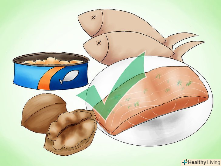 Їжте багато риби.більшість морепродуктів містять омега - 3 жирні кислоти, які, як було виявлено, знижують рівень тривожності та гормонів стресу, таких як кортизол.[3] якщо ви намагаєтеся боротися зі стресом за допомогою їжі, обов'язково включіть в свій раціон багато риби.