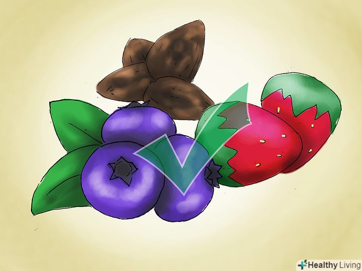 Перекусіть ягодами. важко боротися зі стресом, якщо ви фізично нездорові або відчуваєте нестачу енергії. Ягоди допоможуть вам у боротьбі зі стресом, так як містять фітонутрієнти і антиоксиданти, які покращують роботу імунної системи. Так що не забувайте регулярно їсти ягоди.[7]- Додайте свіжих ягід, наприклад, полуниці, малини або чорниці, до ранкових цільнозернових пластівців або вівсянки.