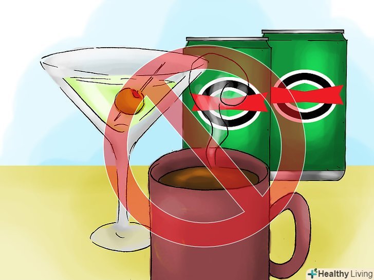 Уникайте вживанняАлкоголю і Кофеїну.хоча і кофеїн, і алкоголь можуть на деякий час знизити рівень стресу (хоча і по-різному), обидва ці речовини приносять набагато більше шкоди, ніж користі. Щоб побороти стрес за допомогою їжі, обмежте кількість споживаного кофеїну і алкоголю.- Вживання алкоголю може призвести до прийняття поганих імпульсивних рішень, що тільки підвищить загальний рівень стресу.