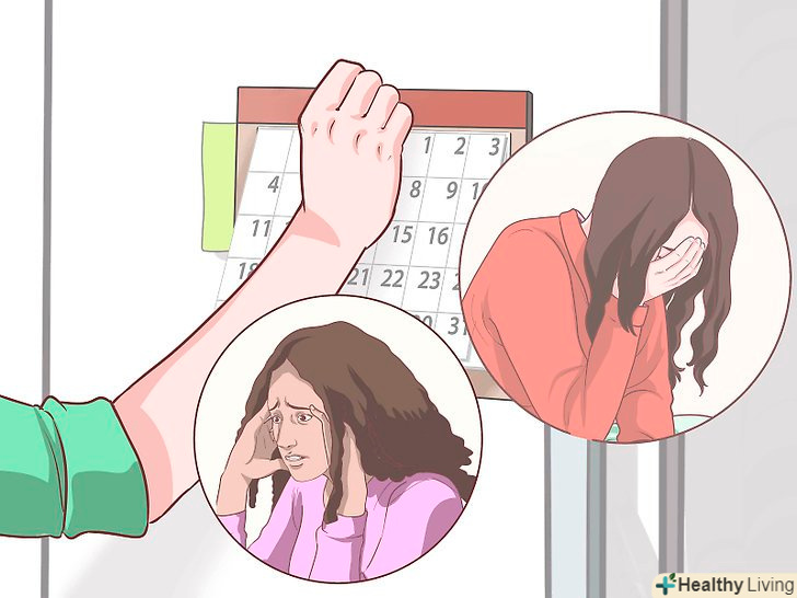 Слідкуйте за проявом симптомів.Візьміть великий календар з холодильника або великий блокнот і записуйте в нього, скільки годин ви спали і чи відчуваєте ви себе відпочили після початку місячних, чи відчуваєте ви сильний холод або спеку, набрали ви вагу або схудли, почастішало ваше серцебиття або дихання. Записуйте, що ви робили, коли у вас виникло те чи інше відчуття. Якщо ви занервуєте або почнете про щось переживати, зупиніться на мить і задумайтеся про те, викликані ці відчуття подіями у Вашому житті або їх причина незрозуміла?[11]- Проблеми з щитовидною залозою можуть довгий час не проявлятися. У нашому тілі існує ряд механізмів, які здатні компенсувати розлад щитовидної залози. Однак не соромтеся попросити лікаря провести кілька аналізів, якщо ви стурбовані можливими проблемами з щитовидною залозою.