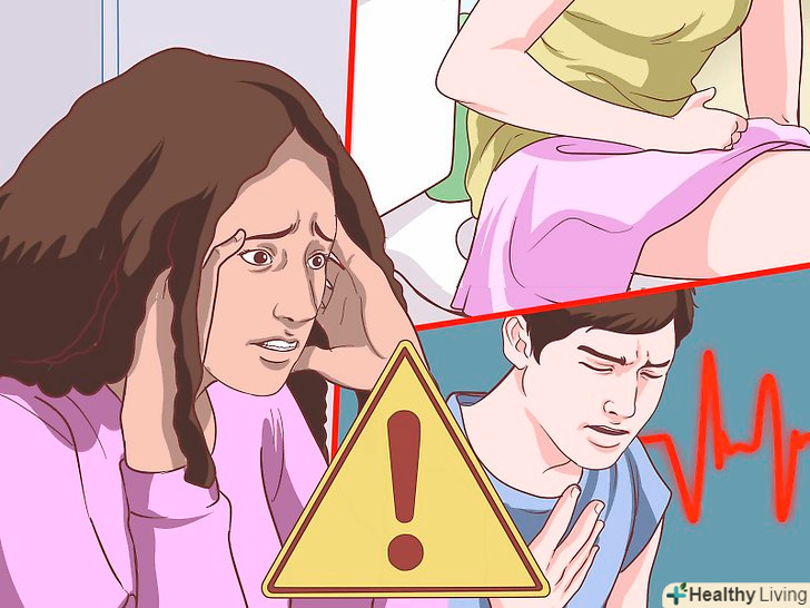 Остерігайтеся симптомів гіпертиреозу.гіпертиреоз-це захворювання, при якому щитовидна залоза знаходиться в стані гіперфункції. Це захворювання може бути викликано базедової хворобою, пухлинами, тиреоїдином (запалення щитовидної залози), вузловим зобом і прийомом деяких препаратів.[4] до симптомів гіперфункції щитовидної залози відносяться:[5][6]- Прискорене серцебиття або відчуття сильного серцебиття