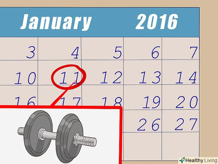 Спочатку складіть розклад тренувань.вам буде важко дотримуватися свого плану, якщо ви не продумаєте, як вбудувати його в свій щоденний розпорядок дня. Перед початком тренувань накидайте розклад занять на тиждень. Це допоможе вам виконувати свій план і виробити звичку регулярних фізичних вправ.[3]- Напишіть розклад занять на тиждень. Запишіть в щоденник кожне тренування, яку ви плануєте протягом тижня. Запишіть час, місце і що саме ви збираєтеся робити на тренуванні.