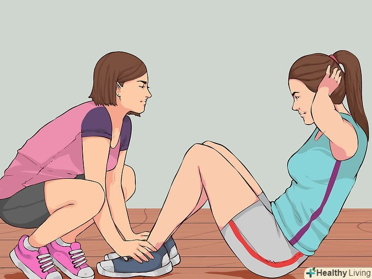 Заплануйте Спільні заняття з кимось із близьких.неважливо, з ким ви будете займатися, з подругою, з кимось із сім'ї або взагалі будете ходити на групові заняття, але якщо ви прийміть на себе зобов'язання перед іншими, це допоможе вам проявити велику наполегливість в тренуваннях.[7]- Спільні тренування з іншими людьми дають відмінну можливість не тільки проявити фізичну активність, але також і поспілкуватися, і повеселитися.[8]