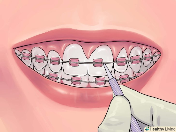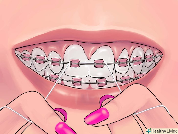 Не забувайте чистити зуби ниткою.Навчіться користуватися ниткою при надітих скобах - в цьому Вам допоможе стоматолог-гігієніст. Було б жахливо витратити купу часу, грошей і зазнавати позбавлення при вирівнюванні зубів, щоб на виході отримати карієс і хворі ясна.- Якщо не можете впоратися з дужкою для заведення нитки, використовуйте готові комплекти!