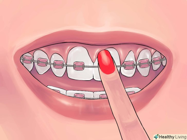 Брекети не повинні завдавати дискомфорту.після завершення огляду перевірте пальцем, щоб скоби не випирали ззаду. Скоби не повинні поранити щоки. Якщо щось заважає, ваш ортодонт і сам буде радий усунути проблему і не допустити, щоб скоби пошкодили щоки.- Якщо вони врізаються в ясна і ранять їх, нанесіть трохи воску на частину, що заподіює дискомфорт. Віск можна взяти у стоматолога.