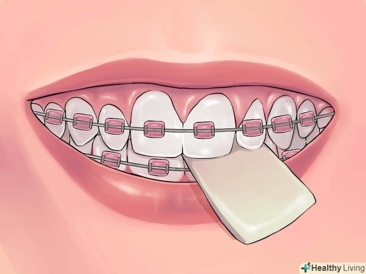Поцікавтеся у ортодонта про жувальну гумку.у кожного ортодонта своя думка з цього приводу: деякі бояться, що скоби можуть не витримати, інші нічого не мають проти жуйок без цукру. Більш того, деякі вважають, що жуйка знімає біль від брекетів, очищає їх від залишків їжі і допомагає звикнути жувати. Дотримуйтеся порад свого ортодонта.