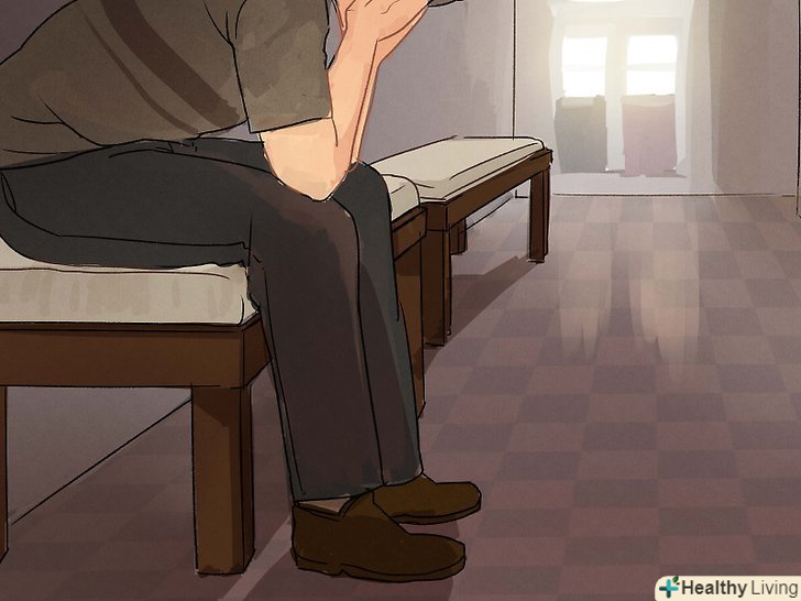 Дочекайтеся допомоги.якщо ви змушені чекати, поки хтось прийде до вас додому, або перебуваючи в лікарні, сядьте і дихайте глибше. Слідкуйте за диханням, розподіляючи його за часом, наприклад, роблячи двадцять вдихів і видихів в хвилину. Займіться чимось, щоб відволіктися, і не забувайте, що скоро вам допоможуть.- Не вживайте наркотичні речовини або алкоголь протягом цього часу, так як це негативно позначиться на вашому мисленні і тільки посилить ваш стан.[4]