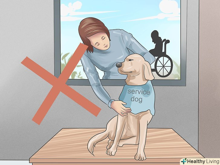 Не грайте з собакою-поводирем і не гладьте її.так, складно пройти повз милої собаки-поводиря. Тим не менш, ніколи не дозволяйте собі грати з такою собакою, не запитавши попередньо дозволу у її власника. Собаки-поводирі зайняті важливою справою, не варто відволікати їх своєю ласкою. Завжди запитуйте дозволу повозитися з собакою-поводирем у її власника. Якщо дозволять-то не гладьте її занадто довго. Якщо не дозволять - не ображайтеся, справа не в вас.- Не пригощайте собаку-поводиря чимось смачним, якщо тільки власник собаки вам це не дозволив.