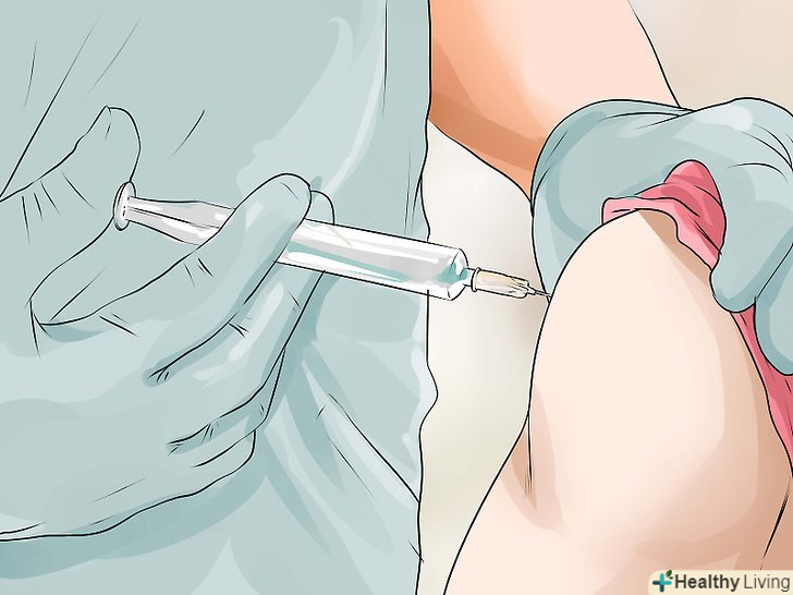 Негайно зверніться за медичною допомогою.[6] в ідеалі вам слід звернутися до лікаря відразу після можливого зараження бактеріями правця. Якщо щеплення вам робили більше 10 років тому, то крім ін'єкції протиправцевого імуноглобуліну лікар також вколе вам вакцину.- Вам внутрішньом'язово введуть 3000-6000 одиниць протиправцевого імуноглобуліну. Цей розчин містить імуноглобулін G, антитіло, яке дозволить організму позбутися від усіх токсинів, що виробляються бактеріями правця. Цей укол посилить ваш імунітет і дозволить боротися з інфекцією.