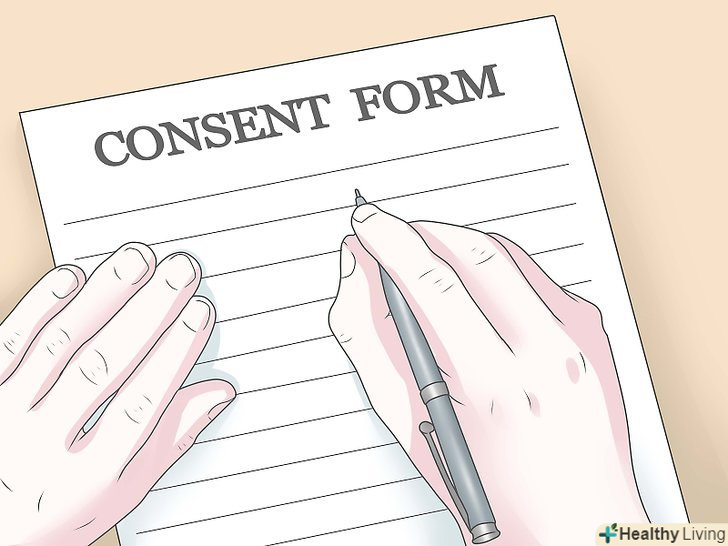 Підпишіть форму згоди пацієнта.Ваш лікар проінформує вас про процес проведення процедури, а також про ризики та переваги біопсії. Вам потрібно буде підписати форму згоди, як це робиться при будь-якій операції.