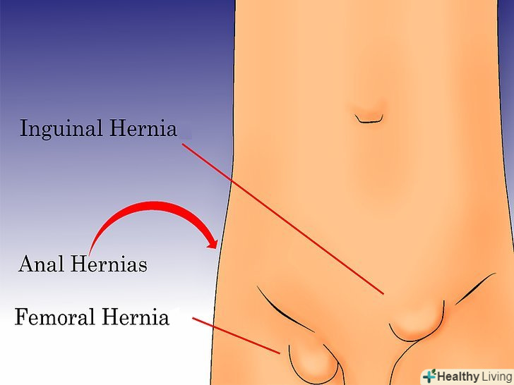 Сходіть до лікаря, щоб підтвердити грижу.деякі грижі є "ущемленими", що означає, що випнутий орган втрачає кровопостачання або блокує кишечник.[12] такі грижі вимагають негайного медичного втручання.- Зверніться до лікаря. Обов'язково повідомте лікаря про всі свої симптоми.