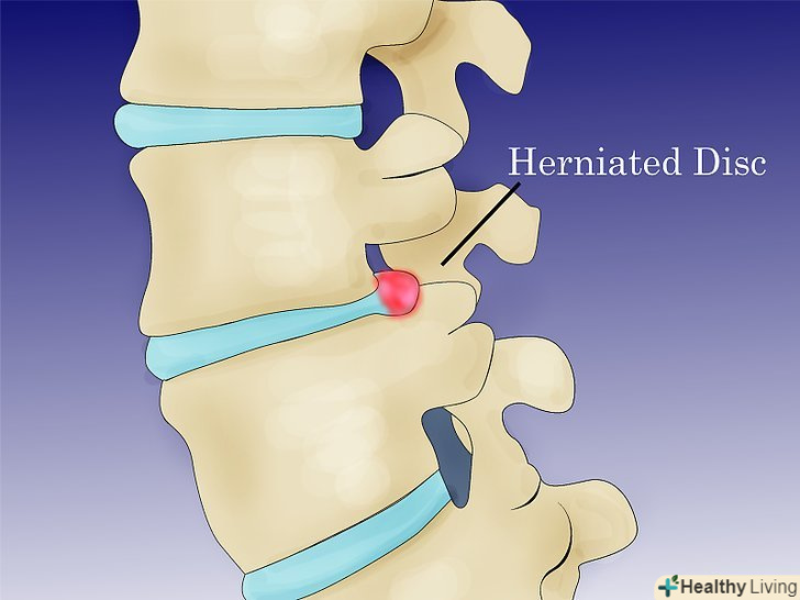 Інші види гриж.грижі можуть з'являтися в інших місцях тіла, крім живота і пахової області. Зокрема, наступні грижі можуть представляти медичні проблеми:- грижа міжхребцевого диска утворюється тоді, коли диск в хребті розривається, починає випинатися і затискати нерв.[9] хребетні диски є амортизаторами, але можуть бути зміщені через травму або хвороби, в результаті чого і виникає грижа.
