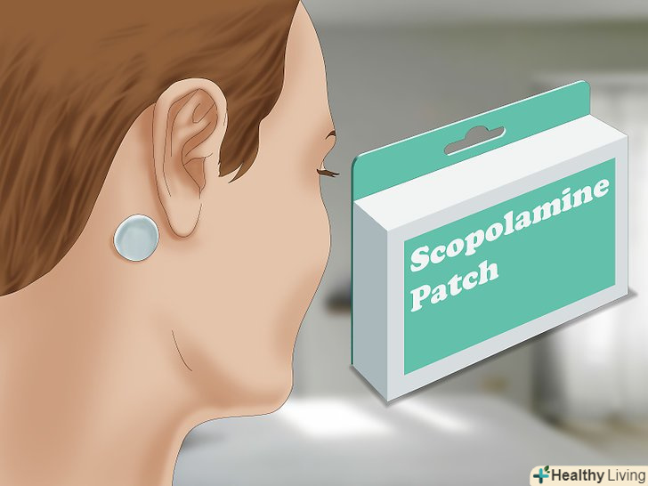 Дістаньте пластир зі скополаміном.до цього препарату зазвичай вдаються тоді, коли дименгідринат не допомагає. Найчастіше скополамін відпускають у вигляді пластиру.- Навіть якщо у вашій аптеці цей препарат відпускається без рецепта, слід обговорити з лікарем можливі побічні ефекти, включаючи сонливість, дезорієнтацію, сухість у роті і галюцинації.[1]