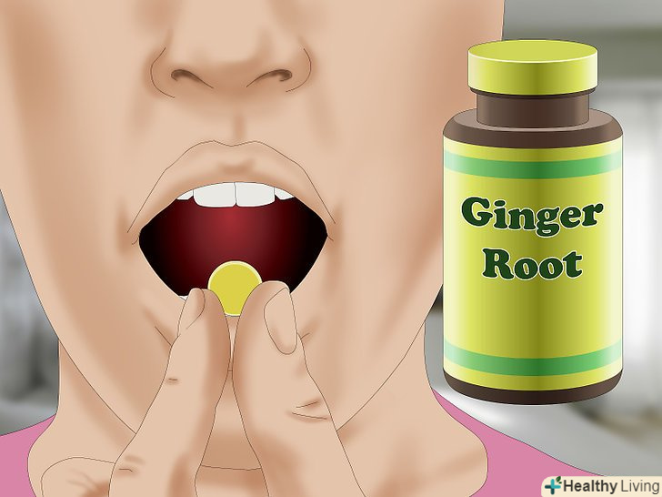 Спробуйте обійтися імбирними добавками.імбир (Zingiber officinale) є дешевим, але ефективним засобом проти морської хвороби. Ви можете вживати імбир в сирому вигляді або в якості пастилки/таблетки. Імбир можна придбати в будь-якому продуктовому магазині або аптеці.- Якщо ви хочете вжити сирої імбир перед поїздкою, достатньо лише очистити його і нарізати дрібненькими кубиками. Уявіть собі жувальну гумку і наріжте імбир шматочками такого ж розміру. Врахуйте, що у багатьох людей після імбиру в роті залишається їдкий і досить неприємний присмак. Якщо ви в їх числі, віддайте перевагу таблетці або пастилці.[3]