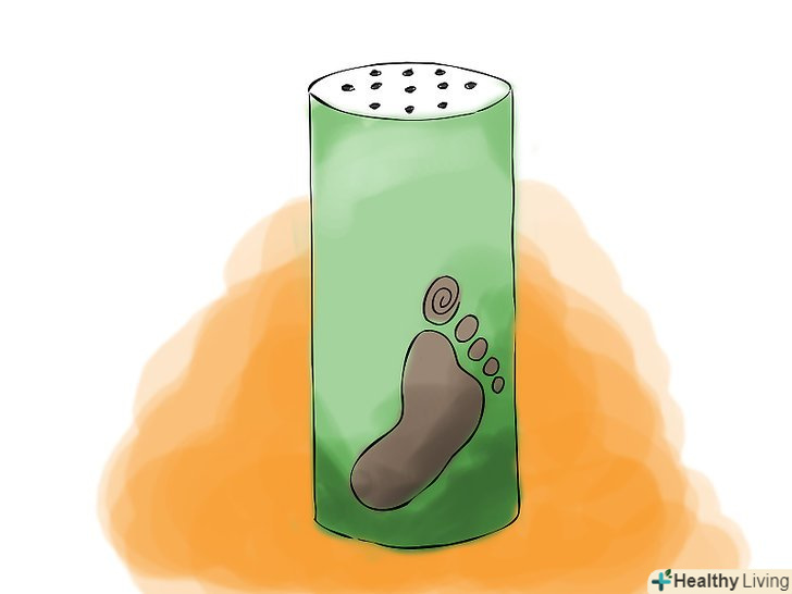 Спробуйте використовувати присипку для ніг[1] яка буде поглинати вологу.в результаті цього, мозолі на пальцях матимуть мінімальну можливість для роздратування і запалення.- Насипте присипку між пальцями ніг, перш ніж надіти вранці шкарпетки і взуття. Ви також можете повторно використовувати присипку протягом дня в міру необхідності, якщо відчуваєте, що шкіра між пальцями ніг стає пітною.