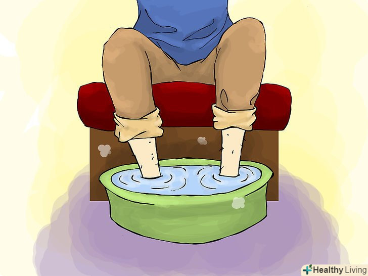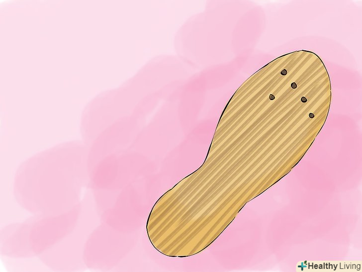Обережно зішкребіть потовщені ділянки шкіри пемзою.Отпарьте ноги в теплій мильній воді приблизно 20 хвилин, щоб пом'якшити шкіру. Після цього акуратно зіскоблити ділянки мозолів пемзою, щоб видалити найгрубіші місця поверхні.[2]- Крім того, спробуйте використовувати пилочку замість пемзи.[3] коли мозоль утворюється між пальцями, може бути важко дістатися до неї пемзою. В цьому випадку слід використовувати грубу пилочку, типу нождачки.