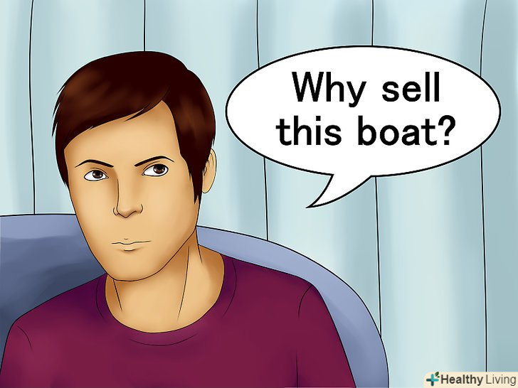- Запитайте, чи є вони власниками судна, чи було воно в солоній воді, коли останній раз використовували, як зберігали взимку, проводився незначний або капітальні ремонт пошкоджень (заміна електропроводки, тріщини в корпусі, Заміна головки двигуна) і чи залишилися несправності. Якщо ви говорите з власником судна, зверніть увагу на його тон. Якщо схоже, що він нервує, поспішає або роздратований, можливо він щось приховує. Один з основних питань, на який ви повинні дізнатися відповідь, це чому вони продають човен. З цієї відповіді, ви зможете вирішити, як багато ви можете запропонувати за човен.