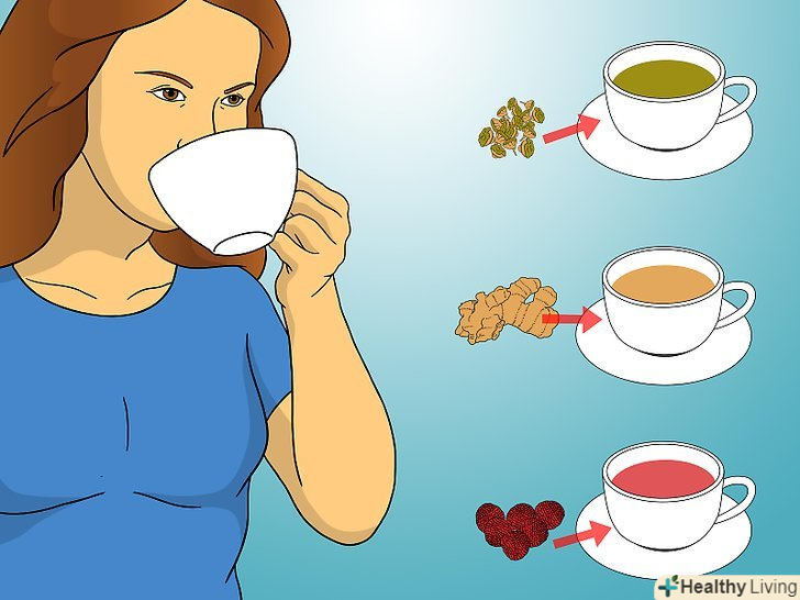 - Чай з малиною.чай з малиною містить фрагарин, який підтягує і тонізує м'язи області таза. Малина містить таніни, які допомагають при боротьбі зі спазмами, нудотою і блювотою, а також діареєю. Однак, щоб чай дав ефект, його слід пити регулярно, особливо перед настанням менструації.[8]